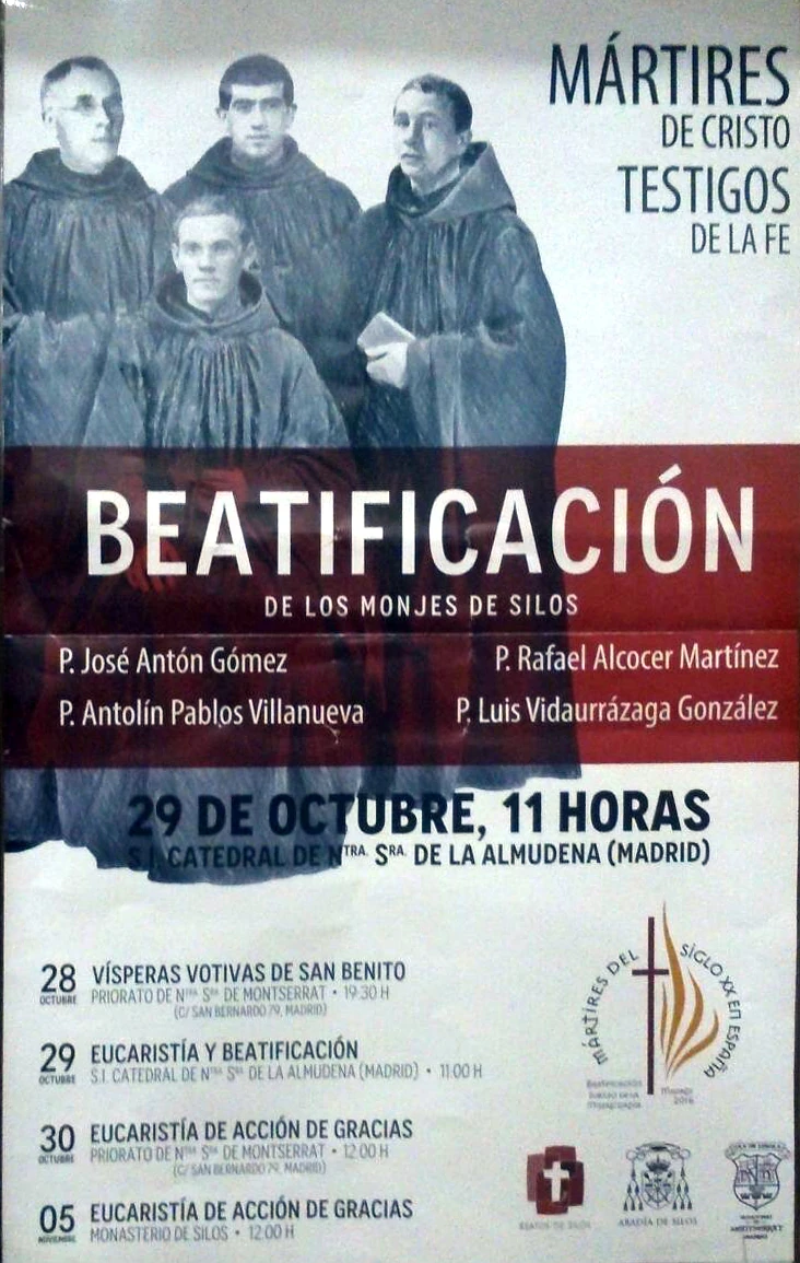 Beatificación el 29 de octubre de 2016 en la catedral de la Almudena de Madrid a las 11 horas. En el cartel de la beatificación, Antón es el que está sentado. Página web oficial.