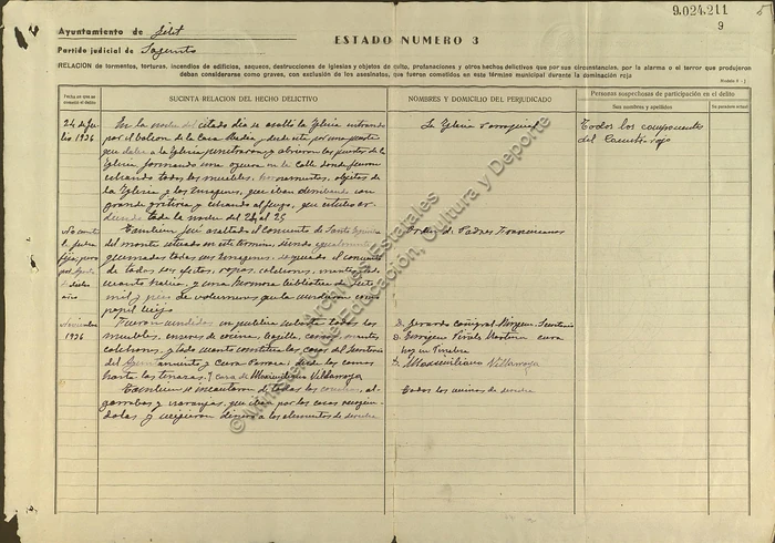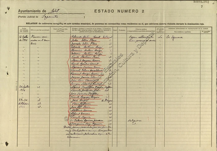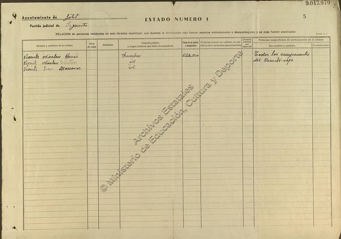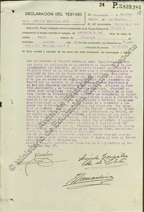 Documentación en la Causa general, legajo 1382, expediente 6, 104 folios. Un grupo de los aquí asesinados procedía de Foyos (Foios), entre ellos las dos Hijas de la Caridad -Joaquina Rey Aguirre y Victoria Arregui Guinea, beatificadas en 2013- y el sacerdote José Ruiz Bruixola, beatificado en 2001.