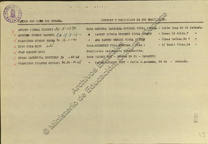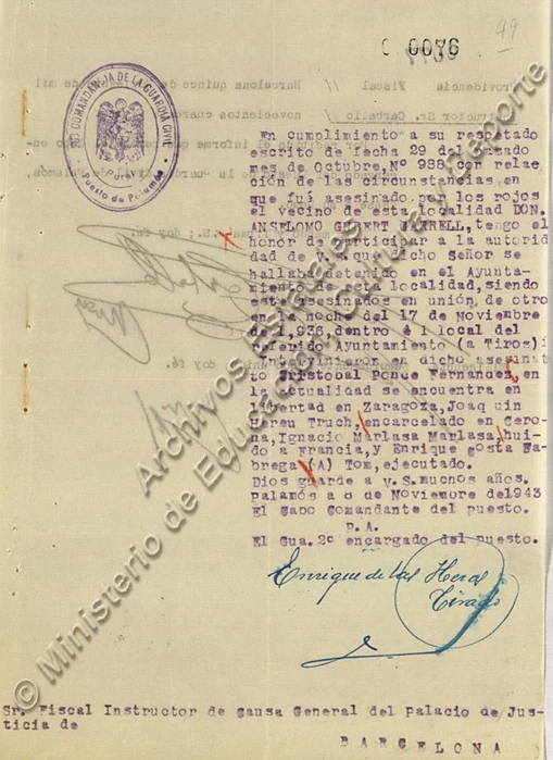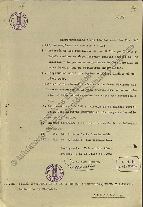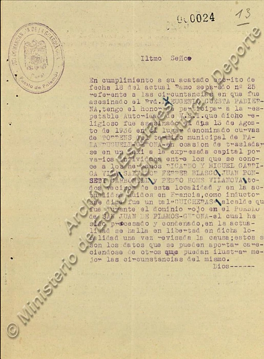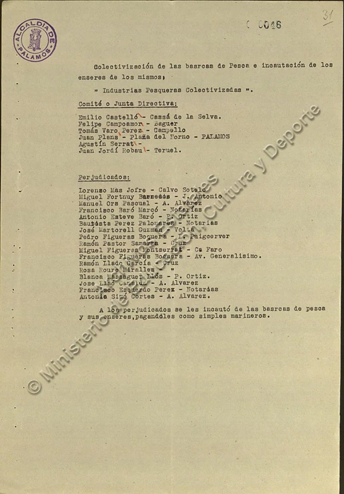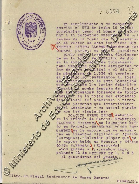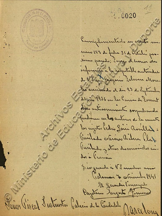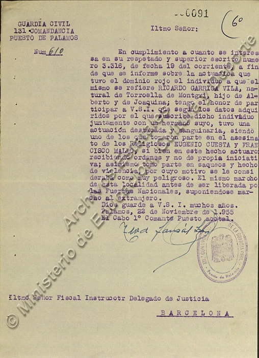 Documentación en la Causa general, legajo 1431, expediente 16 (96 folios) y San Juan de Palamós (expediente 25, 67 folios):