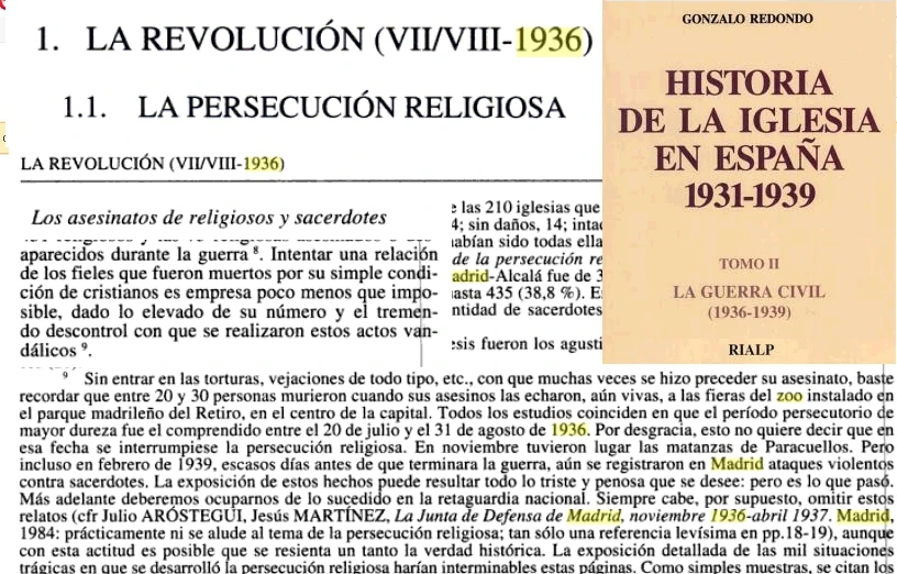 Historia de la Iglesia en España 1931-1939. Tomo II. La guerra civil (1936-1939), Rialp, p. 20 (1.1. La persecución religiosa. La revolución (VII/VIII-1936).